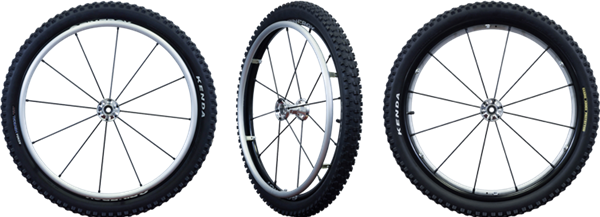 The 25" Spinergy LX Off-Road Wheel Package combines the Spinergy quality construction with the off-road tires you need when heading off the beaten path, through the sand, or anything else that may require a mountain bike type tire. The 12 spokes are made from a fancy material with a long name that translates into a spoke that's made 3 times stronger than stainless steel but weigh only half as much! They're also offered in 9 stylish colors to accent your chair, tires, or taste in color.