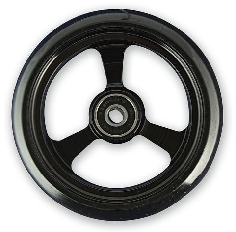 Lightweight & durable Solid urethane, rounded profile tire Aluminum caster rim, black poly tire 5/16" I.D. Precision bearings included Fits most ultralight wheelchairs 1" Hub width Sold individually